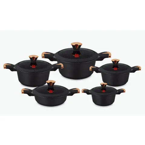 Juego de ollas de lujo directo de fábrica, juego de utensilios de cocina, juego de ollas de granito de 10 piezas, cazuela, sartén profunda, mezcla de colores