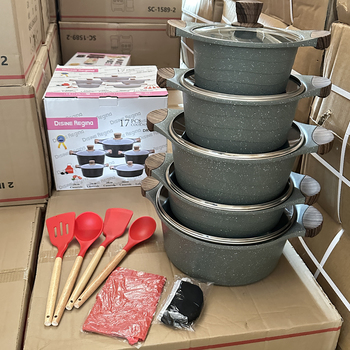Venta al por mayor de fábrica, recién llegado, superventas, precio asequible, utensilios de cocina, juego de 10 Uds., ollas antiadherentes de aleación de aluminio
